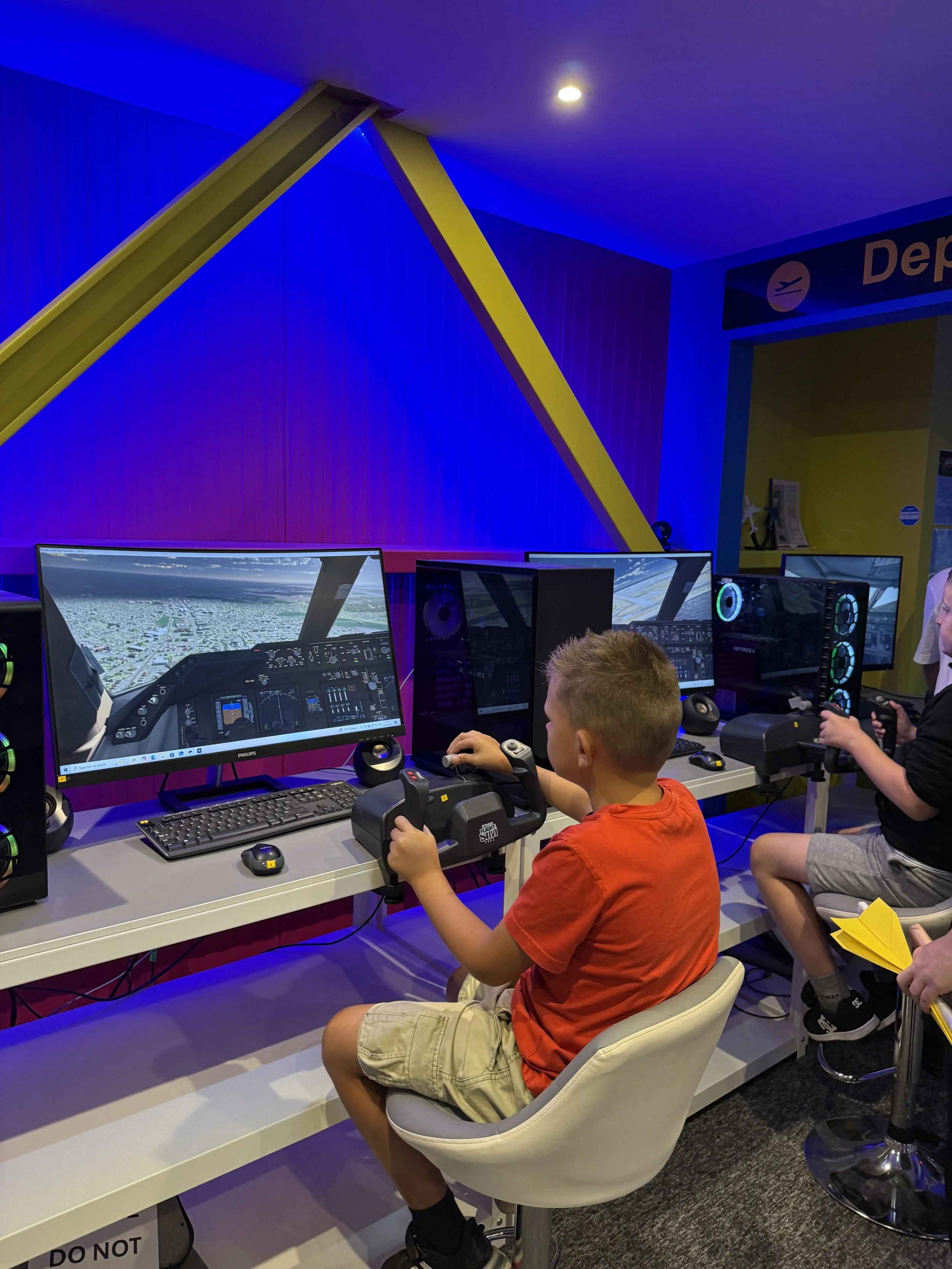 1 hour on the simulator and 30 minutes to check in, go through security, climb aboard our real Boeing 737-300 fuselage section and turn on the engines.