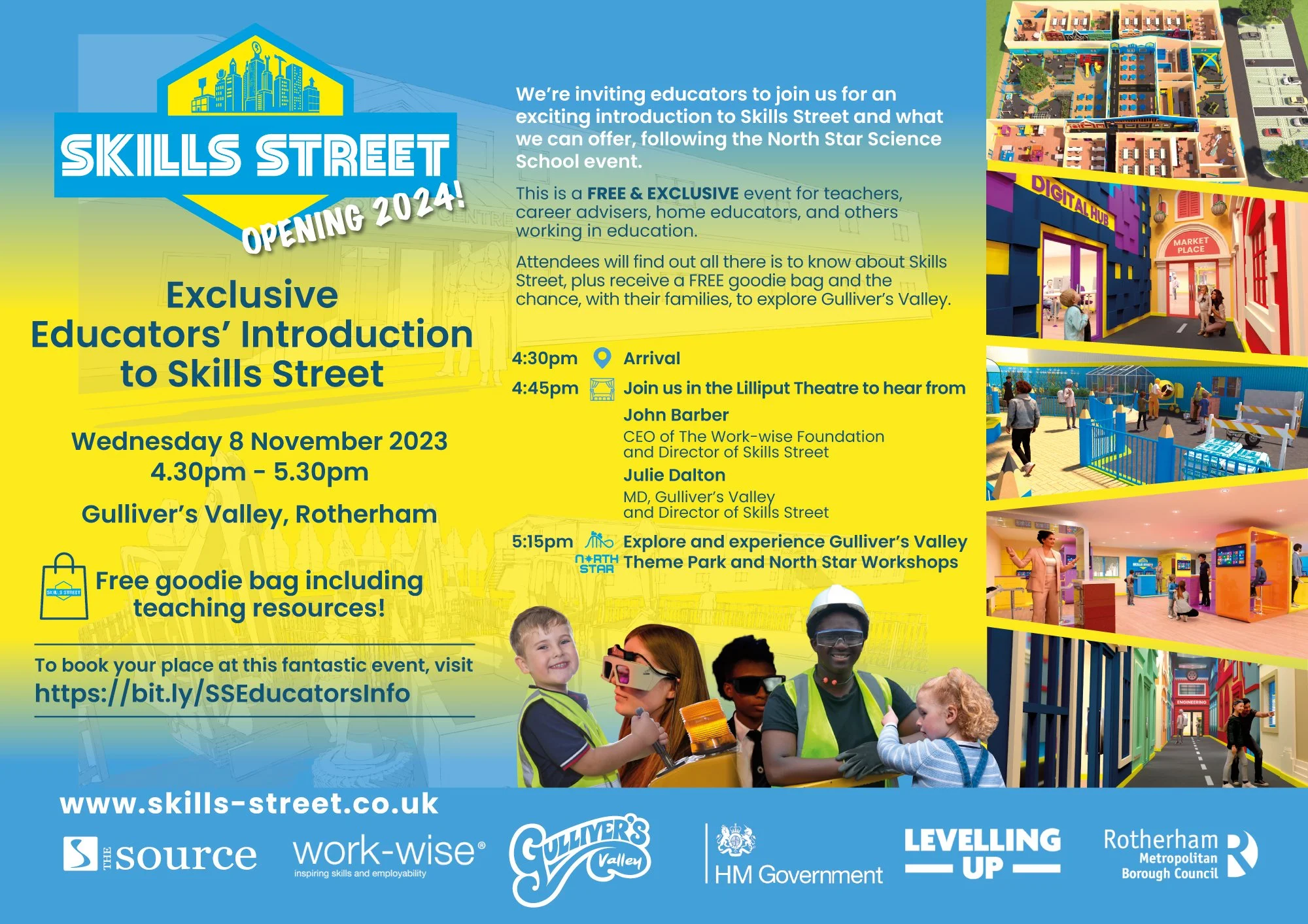 Attendees will find out all there is to know about Skills Street, plus receive a FREE goodie bag and the chance, with their families, to explore Gulliver’s Valley.